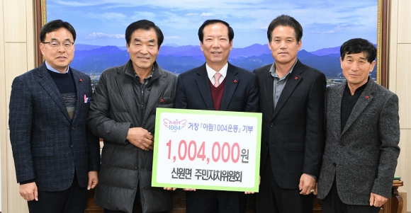 ½Å¿ø¸é ÁÖ¹ÎÀÚÄ¡À§¿øÈ¸(À§¿øÀå ±èÁø±Ù)´Â 26ÀÏ °ÅⱺÀ» ¹æ¹®ÇÏ¿© °Åâ¾Æ¸²1004¿îµ¿¿¡ 1,004õ¿øÀ» ±âºÎÇÏ¿´´Ù.