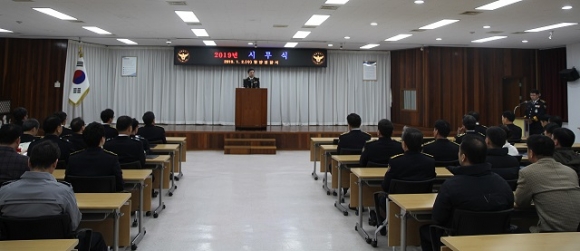 ÇÔ¾ç°æÂû¼(¼Àå ±èµ¿±Ç)´Â `19. 1. 2. 10:00 °æÂû¼ 3Ãþ ȸÀǽǿ¡¼ 2019³â ½Ã¹«½ÄÀ» °®°í, Ȳ±ÝµÅÁöÇØ¸¦ ¸Â¾Æ °øµ¿Ã¼ ȸº¹°ú »îÀÇ Áú Çâ»óÀ» À§ÇØ ½Ã¹ÎÀÇ °ø°¨°ú ÁöÁö¸¦ ¹Þ´Â Ä¡¾ÈȰµ¿À» Àü°³Çؼ ±º¹Î ¾ÈÀü°ú ÇູÀ» Áö۴µ¥ ÃÑ·ÂÀ» ´Ù ÇÒ °ÍÀ» ´ÙÁü Çß´Ù. ½Ã¹«½Ä¿¡ ¾Õ¼ ÃæÈ¥Å¾°ú À§·Éºñ¸¦ Âü¹èÇϰí Á¶±¹¼öÈ£¿Í ±¹¹Î¾ÈÀüÀ» À§ÇØ Èñ»ýÇϽмø±¹¼±¿°ú È£±¹¿µ·ÉÀÇ ¼þ°íÇÑ ³ÌÀ» ±â·È´Ù. À̳¯ ½Ã¹«½Ä°ú ÇÔ²² ½ÂÁøÀÓ¿ë½ÄÀ» °³ÃÖÇÏ¿© û¹®°¨»ç°èÀå Á¤ºÎ¿µ, ±³ÅëÁ¶»çÆÀÀå ¹ÚÈñ¿ÀÌ °æ°¨À¸·Î, °æ¸®°è ±èÃæ±ÙÀÌ °æÀ§·Î, ¼ö»ç°è ÀÌÀºÈ´Â °æÀåÀ¸·Î °¢°¢ ½ÂÁøÀ» ÇÏ¿´´Ù.