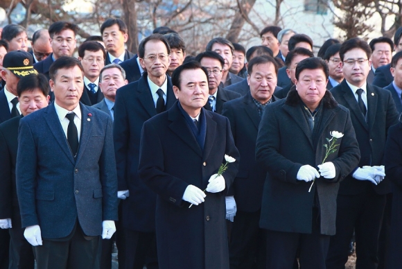 ÇÑÆí, ½Ã¹«½Ä¿¡ ¾Õ¼ À̳¯ ¿ÀÀü 8½Ã ¼Ãá¼ö ±º¼ö¿Í ȲÅÂÁø ±ºÀÇȸÀÇÀå ¹× ±ºÀÇ¿ø, ±º °£ºÎ°ø¹«¿ø µî°ú ÇÔ¾çÀ¾ ¼ÒÀç ÃæÈ¥Å¾À» ã¾Æ ¼ø±¹¼±¿ÀÇ ¶æÀ» ±â¸®¸ç ÇåÈ¡¤Âü¹èÇß´Ù |