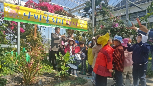 ÇԾ籺 ³ó¾÷±â¼ú¼¾ÅÍ(¼ÒÀå À̵µ¼º)´Â 2ÀÏ ¿ÀÀü 10½Ã ³ó¾÷±â¼ú¼¾ÅÍ ½ÇÁõ½Ã¹üÆ÷¿¡¼ ²Þ³ª¹«À¯Ä¡¿ø(¿øÀå ¿©¿îÁÖ) ¿ø»ý(7¼¼) 30¿©¸íÀ» ´ë»óÀ¸·Î ¡®¾î¸°ÀÌ ³ªºñ³¯¸®±â Çà»ç¡¯¸¦ ½Ç½ÃÇÏ¿´´Ù. À̳¯ Çà»ç´Â ²Þ³ª¹«À¯Ä¡¿ø ¾î¸°ÀÌ 30¸íÀÌ ¹èÃßÈò³ªºñ, È£¶û³ªºñ µî 200¸¶¸®ÀÇ ³ªºñ¸¦ ³¯¸®¸ç, ºÒ·ÎÀå»ý 2020Ç׳ëÈ»ê»ï¿¢½ºÆ÷ ¼º°øÀ» ±â¿øÇß´Ù. ¶Ç ¾î¸°ÀÌ ÈÈÑüÇè ±³À°°ú ÇÔ²² ²É°ú ³ªºñ °ïÃæÀ» ¼ÒÀç·Î ÇÑ ´Ùä·Î¿î üÇèÇÁ·Î±×·¥ Çà»ç°¡ ÁøÇàµÇ¾ú´Ù.