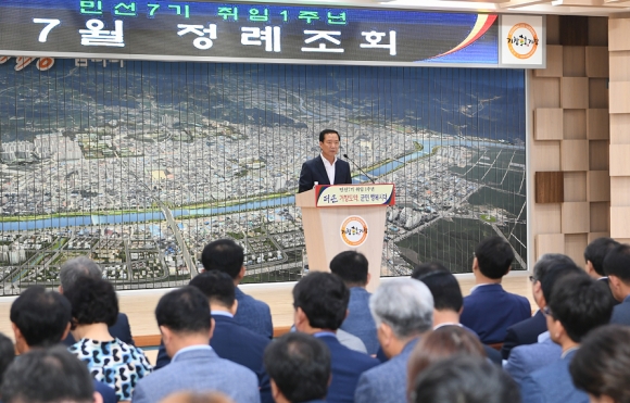 ¹Î¼±7±â ÃëÀÓ 1ÁÖ³âÀ» ¸Â´Â ±¸Àθð °Åⱺ¼ö´Â ¿©·¯ °¡Áö Áö¿ª»çȸºÐÀ§±â¿Í ¾î·Á¿î °æÁ¦»óȲÀ» °í·ÁÇØ ÃëÀÓ1Áֳ⠱â³äÇà»ç¸¦ Á¤·ÊÁ¶È¸·Î ´ëüÇϰí, Áö³ 1³â°£ÀÇ ÁÖ¿ä ±ºÁ¤ ¼º°ú¿Í ÇØ°áÇØ ³ª°¡¾ß ÇÒ °úÁ¦¿¡ ´ëÇØ ´Ù½Ã ÇÑ ¹ø Á¡°ËÇÏ´Â ½Ã°£À» °¡Á³´Ù.