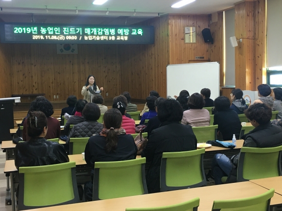 À̹ø ±³À°Àº ³ó¾÷±â¼ú¼¾ÅÍ ±³À°Àå¿¡¼ 11¿ù 8ÀϺÎÅÍ 11¿ù15ÀϱîÁö ÃÑ 6ȸ 300¸íÀÇ ³ó¾÷ÀÎÀ» ´ë»óÀ¸·Î ³ó»çÀÏ µî ¾ß¿ÜȰµ¿ ½Ã Áøµå±â ¸Å°³°¨¿°º´ ¿¹¹æ¼öÄ¢°ú °ü¸®¹ý, ¿¹¹æ¿ëǰ Ȱ¿ë¹æ¹ý ¹× ½Ã¿¬ µîÀÇ ³»¿ëÀ¸·Î ÁøÇàµÈ´Ù.