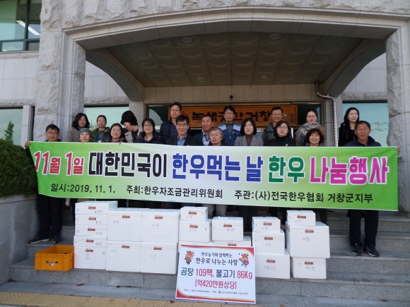 Àü±¹ÇÑ¿ìÇùȸ°ÅⱺÁöºÎ(ÁöºÎÀå ÃÖµ¿À±)´Â 12ÀÏ °Åⱺ³ó¾÷±â¼ú¼¾ÅÍ¿¡¼ ¾Æµ¿¼¾ÅÍ 15°³¼Ò ¹× ³ëÀÎÀü¹®¿ä¾ç¿ø 4°³¼Ò¿¡ ÇÑ¿ì ºÒ°í±â 68kg, °õÅÁ 153ÆÑ µî 4¹é2½Ê¸¸ ¿ø »ó´çÀÇ ÇÑ¿ì ³ª´® Çà»ç¸¦ °¡Á³´Ù.