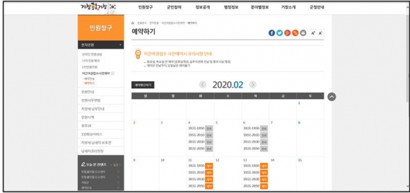 Àϰú½Ã°£¿¡ ±ºÃ» ¹æ¹®ÀÌ ¾î·Á¿î Á÷ÀåÀÎ, Çлý µîÀÌ ÁÖ¿ä ´ë»óÀ̸ç, ½Åû¹æ¹ýÀº °ÅⱺȨÆäÀÌÁö ¹Î¿øÃ¢±¸ÄÚ³Ê ¾ß°£¿©±ÇÁ¢¼ö ¶õ¿¡ ¹æ¹® °¡´ÉÇÑ ¿¹¾à½Ã°£À» ÀÔ·ÂÇÑ ÈÄ, ±ºÃ» ¹Î¿ø¼ÒÅë°ú¸¦ ¹æ¹®ÇÏ¸é µÈ´Ù.