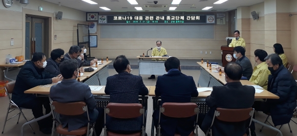 °ÅⱺÀº µµ³» Äڷγª19 È®ÁøÀÚ ¹ß»ý¿¡ µû¶ó 21ÀÏ ±ºÃ» ÁßȸÀǽǿ¡¼ ±³È¸‧ºÒ±³‧¼º´ç µî °ü³» Á¾±³´Üü °ü°èÀÚ µî 20¿© ¸íÀÌ Âü¼®ÇÑ °¡¿îµ¥, °ü³» Äڷγª19ÀÇ È®»ê ¹æÁö¸¦ À§ÇÑ ±ä±Þ °£´ãȸ¸¦ °³ÃÖÇß´Ù°í ¹àÇû´Ù.