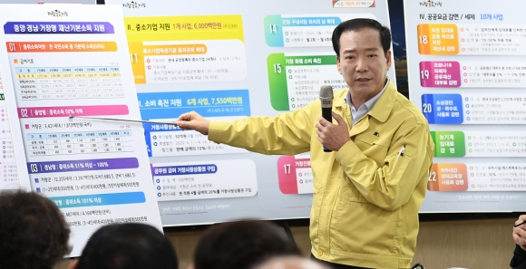 ¡°°æ¿µ³¿¡ Á÷¸éÇØ ÀÖ´Â ¼Ò»ó°øÀεéÀÇ °íÅëÀ» ´ú¾îÁÖ±â À§ÇÑ Áö¿ª°æÁ¦»ì¸®±â Á¾ÇÕ´ëÃ¥¿¡ »çȰÀ» °Ç ¸¸Å À̹ø À§±â¸¦ °ø¹«¿ø°ú ±º¹ÎµéÀÌ ÇÔ²² ÈûÀ» ¸ðÀº´Ù¸é ¹Ýµå½Ã À̰ܳ¾ °Í¡±À̶ó°í °Á¶Çß´Ù.
