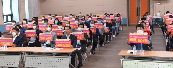 °ÅⱺÀº 28ÀÏ ±ºÃ» ´ëȸÀǽǿ¡¼ 3Ùí³ó¾÷ ½Çõ Âü¿©³ó°¡, ±ºÀÇȸ ÀÇÀå°ú ÀÇ¿ø, ³óÇù±ºÁöºÎÀå, ³ó¾÷°ü·Ã´ÜüÀå µî 100¿©¸íÀÌ Âü¼®ÇÑ °¡¿îµ¥ 3Ùí³ó¾÷ ½Çõ ¼±Æ÷½ÄÀ» °¡Á³´Ù. À̳¯ ¼±Æ÷½ÄÀº ±º¼ö Àλ縻¾¸, ³»ºóÃà»ç, °æ°úº¸°í, Ư°, 3Ùí³ó¾÷ ¼±Æ÷ ¹× °áÀÇ, ÁúÀÇ¡¤ÀÀ´ä ¼øÀ¸·Î ÁøÇàµÆ´Ù.