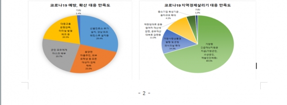 À̾î, Äڷγª19 ¿¹¹æ ¹× È®»ê¹æÁö ´ëÀÀ ¸¸Á·µµ´Â ¡®¼±º°Áø·á¼Ò Ãß°¡ ¼³Ä¡, °æ³² ÃÖÃÊ ¿öÅ·½º·ç ¼³Ä¡ µî ¼±Á¦Àû ¼±º°Áø·á¼Ò ¿î¿µ¡¯(29.4%), ¡®¿õ¾ç¸é ¸¶À»ÁÖ¹Î, ¿ÜºÎ À¯Çлý µî ¸ðµç ´ë»óÀÚ °Ëü äÃ롯(25.0%), ¡®±º¹Î ¸ðµÎ¿¡°Ô ¸¶½ºÅ© ¹èºÎ¡¯(23.7%) ¼øÀ¸·Î ³ªÅ¸³µ´Ù.