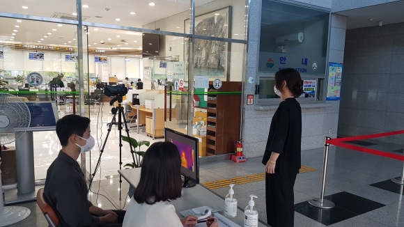 û»ç ÀÔ±¸ÀÇ Ã¼¿ÂÃøÁ¤Àº °Åⱺ ÀÚ¿øºÀ»ç¼¾ÅÍ¿¡¼ Áö¿øÇÑ ÀÚ¿øºÀ»çÀÚÀÇ µµ¿òÀ» ¹Þ¾Æ ÁøÇà ÁßÀ̸ç, ¿È»ó Ä«¸Þ¶ó ¸ð´ÏÅ͸µÀ» ÅëÇØ ¹æ¹®ÀÚÀÇ Ã¼¿ÂÃøÁ¤ ¹× ¼Õ¼Òµ¶, ¸¶½ºÅ© Âø¿ë ¿©ºÎ¸¦ È®ÀÎÇϰí ÀÌ»óÀÚ ¹ß»ý ½Ã º¸°Ç¼Ò ¼±º°Áø·á¼Ò·Î ¾È³»ÇÏ´Â µî ¼±Á¦Àû Á¶Ä¡¸¦ ÃëÇϰí ÀÖ´Ù.