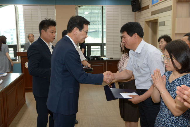 °ÅⱺÀº ±Ý³â ±¹¹Î¾ÈÀüó¿¡¼ ½Ç½ÃÇÑ ¼ÒÇÏõÁ¤ºñ»ç¾÷ ÃßÁø½ÇÅ Æò°¡¿¡¼ Àü±¹ ¿ì¼ö±â°üÀ¸·Î ¼±Á¤µÇ¾î, »ç¾÷ÃßÁø À¯°ø¿¡ µû¶ó °Åⱺ ±â°üǥâÀ¸·Î ‘ÀÚ¿¬ÀçÇØ´ëÃ¥’ºÎºÐ ±¹¹«ÃѸ®Ç¥Ã¢°ú ‘14³â ¾Æ¸§´Ù¿î¼ÒÇÏõ °¡²Ù±â °ø¸ðÀü’ºÎºÐ ±¹¹Î¾ÈÀüóÀå°ü»óÀ» ¼ö»óÇÏ¿© »ó»ç¾÷ºñ 40¾ï ¿øÀ» È®º¸ÇßÀ¸¸ç, À¯°ø°ø¹«¿ø °³Àκκп¡¼´Â °Ç¼³°úÀå ±è¸í¿í(´ëÅë·É), ÁÖ¹«°ü À¯À§¸¸(±¹¹Î¾ÈÀüóÀå°ü)¿¡ ´ëÇÑ Ç¥Ã¢¼ö¿©¸¦ 7¿ù Á¤·ÊÁ¶È¸¿¡¼ ÁøÇàÇß´Ù.