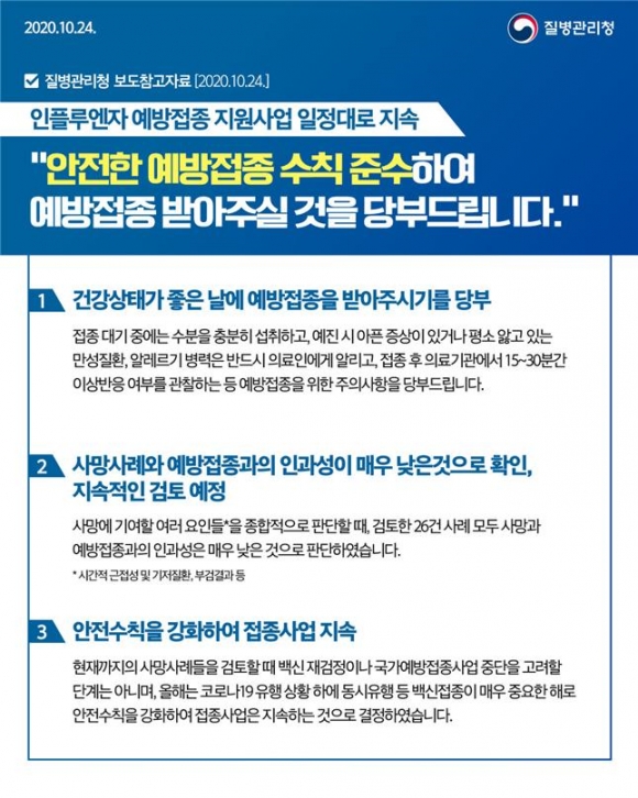 ÇÑÆí, Áúº´°ü¸®Ã»Àº µ¶°¨¹é½Å Á¢Á¾ ÈÄ »ç¸ÁÇÑ »ç¶÷µéÀÇ »çÀÎÀ» ºÐ¼®ÇÑ °á°ú, »ç¸Á»ç·Ê·Î ½Å°íµÈ 59°Ç Áß 46°Ç¿¡ ´ëÇØ ¿¹¹æÁ¢Á¾°ú Àΰú °ü°è°¡ ¸Å¿ì ³·Àº °ÍÀ¸·Î ÆÇ´ÜµÅ µ¶°¨ ¿¹¹æÁ¢Á¾Àº ¿¹Á¤´ë·Î ÃßÁøÇÑ´Ù°í ¹àÇû´Ù.