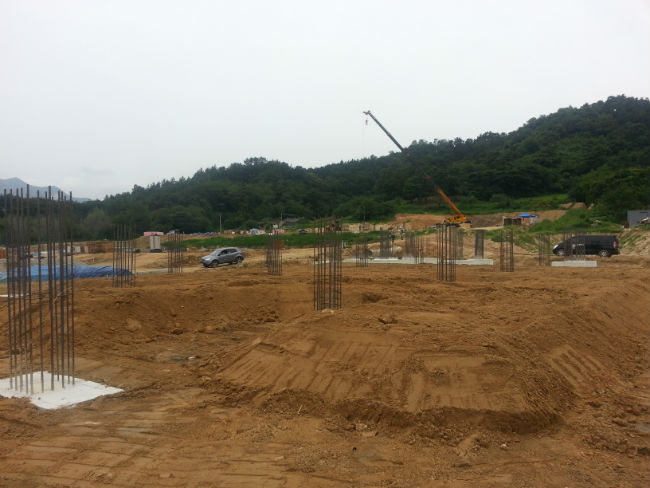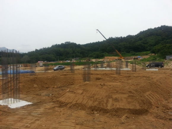 À̻Ӹ¸ÀÌ ¾Æ´Ï´Ù °ø»ç °úÁ¤¿¡¼ °ÇÃàÀÚÀç ±¸Á¶¹°À» ¹ÞÃÄÁÖ´Â ¼¦º¸µåµµ °¡·Î¼¼·Î 1m °£°ÝÀ¸·Î ¼³Ä¡ÇÏ´Â°Ô ¿øÄ¢ÀÌÁö¸¸ ¿©±â¼´Â 1m50cm °£°ÝÀ¸·Î °ø»ç¸¦ ÁøÇàÇϰí ÀÖ°í, ö±Ù°ú °ÅǪÁýÀÌ ´Þ¶óºÙÁö ¾Ê°Ô Çϴµ¥ »ç¿ëµÇ´Â ½ºÆä¼ÈÀ» °¡·Î¼¼·Î 1m50cm °£°ÝÀ» À¯ÁöÇÏ´Â°Ô ¿øÄ¢ÀÌÁö¸¸ ÀÌ ¿ª½Ã 2m °£°ÝÀ¸·Î °ø»ç°¡ ÀÌ·ïÁö°í ÀÖ´Ù‘ °í ÁöÀûÇß´Ù.