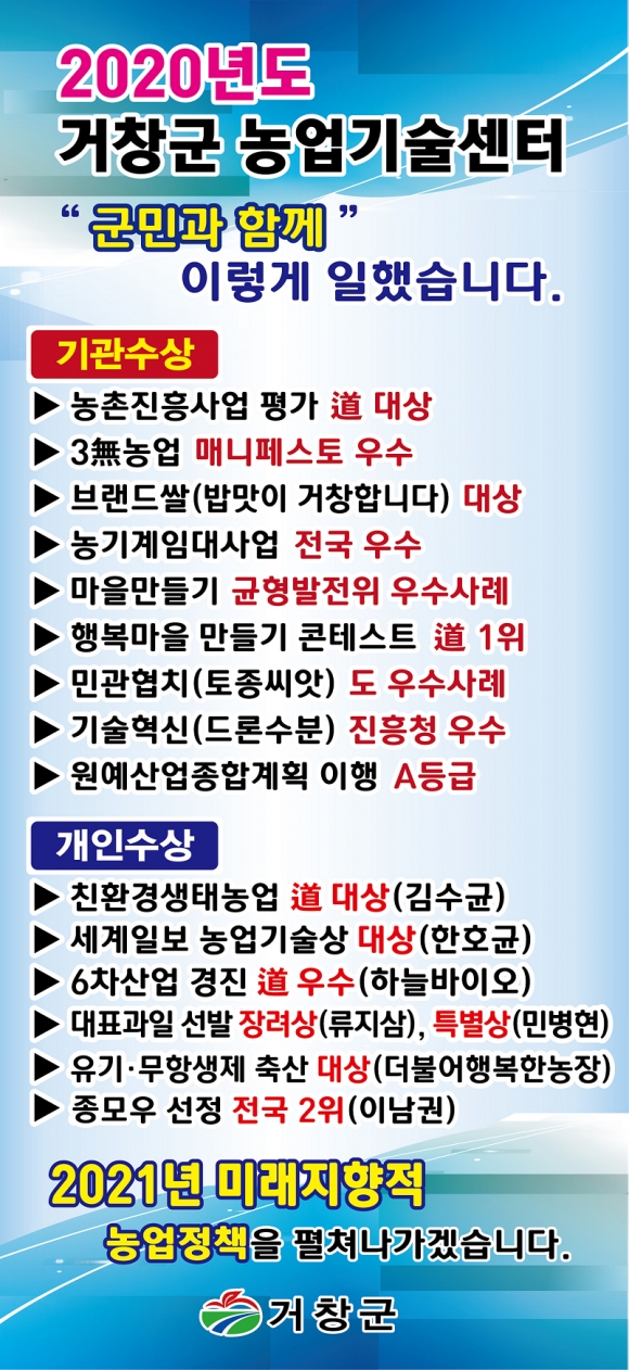 °ÅⱺÀº 2020³â Äڷγª19·Î ¾î·Á¿î ¿©°Ç¿¡µµ ºÒ±¸ÇÏ°í ³ó¾÷ ºÐ¾ß¿¡¼ ´«ºÎ½Å ¼º°ú¸¦ ³»¸é¼ ¹Ì·¡ÁöÇâÀû ³ó¾÷, Àß »ç´Â ³óÃÌ, ÇູÇÑ ³ó¹Î ½Ã´ë¸¦ Â÷Áú ¾øÀÌ ÁغñÇϰí ÀÖ´Ù.