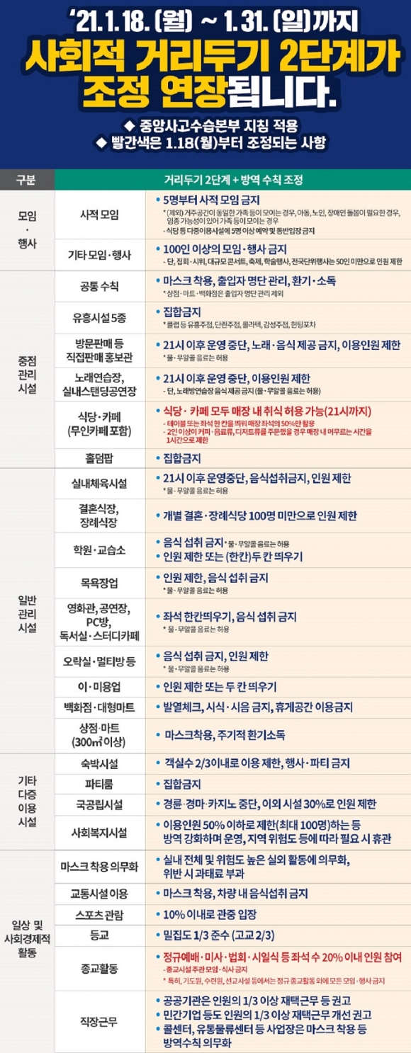 À̹ø Á¶Ä¡´Â Äڷγª19 È®»ê¼¼¸¦ ²ª°í ¼³ ¿¬ÈÞ °¨¿°È®»ê ¹æÁö¸¦ À§ÇÑ Á¤ºÎÀÇ ºñ¼öµµ±Ç »çȸÀû °Å¸®µÎ±â 2´Ü°è À¯Áö ¹æÄ§¿¡ µû¸¥ Á¶Ä¡À̸ç, ÀϺΠ½Ã¼³¿¡ ´ëÇÑ Á¶Ä¡¸¦ Á¶Á¤ÇØ 18ÀÏ 0½ÃºÎÅÍ Àû¿ëÇÑ´Ù.