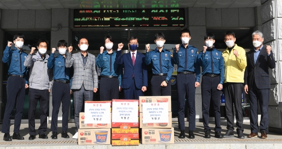 ÃÖ¿µÈ£ °ÅâºÎ±º¼ö´Â ¡°Äڷγª19 È®»êÀ¸·Î ÀÎÇØ Æò¼Òº¸´Ù ´õ ¾î·Á¿öÁø ±Ù¹«È¯°æ¿¡µµ ºÒ±¸Çϰí, °Åⱺ¹ÎÀÌ Æò¿ÂÇÏ°í ¾ÈÁ¤µÈ ºÐÀ§±â ¼Ó¿¡¼ »ýȰÇÒ ¼ö ÀÖµµ·Ï ³ë·ÂÇØ ÁØ ±º À庴°ú °æÂû¼ ´ë¿øµé¿¡°Ô °¨»çµå¸°´Ù¡±¸ç À§¹®Ç°À» Àü´ÞÇÏ°í °Ý·ÁÀÇ ¸¶À½À» ÀüÇß´Ù.