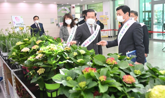 °ÅⱺÀÌ Äڷγª19 È®»êÀ¸·Î ¾î·Á¿òÀ» °Þ°í ÀÖ´Â ÈÈѳ󰡸¦ µ½°í ²É ¼Òºñ¸¦ Ȱ¼ºÈÇϱâ À§ÇØ 23ÀϺÎÅÍ ¿À´Â 26ÀϱîÁö ¡®Çöó¿ö¸¶ÄÏ¡¯À» ¿î¿µÇÑ´Ù. Çöó¿ö¸¶ÄÏÀº ±ºÃ» ·Îºñ¿¡¼ ºñ´ë¸éÀ¸·Î ¿î¿µµÇ°í ÇÁ¸®Áö¾î, Ä«³×À̼Ç, ÇØ¹Ù¶ó±â, ´ÙÀ°½Ä¹°, ¾ß»ýÈ ÈºÐ µîÀÌ ÆÇ¸ÅµÈ´Ù. ±¸Àθð °Åⱺ¼ö´Â "»ç¶ûÇÏ´Â »ç¶÷¿¡°Ô ²É ÇÑ ¼ÛÀ̸¦ ÀüÇϸé Äڷγª·Î ÁöÄ£ ¸¶À½µµ ´Þ·¡°í ÈÈѳ󰡿¡µµ Å« ÈûÀÌ µÇ´Ï ¸¹Àº °ü½É°ú Âü¿©¸¦ ºÎʵ台´Ù¡±°í ´çºÎÇß´Ù.