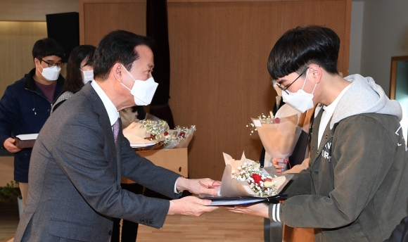 À̳¯ ÀåÇÐÁõ¼ ¼ö¿©½Ä¿¡´Â Äڷγª19·Î ÀÎÇØ ±èÁ¾µÎ ±ºÀÇȸÀÇÀå, Á¤Áø¿ë °Åâ±³À°Áö¿øÃ»±³À°Àå, Á¶¼±Á¦¡¤À̰ÇÇü ÀåÇÐȸÀÌ»ç µî ÃÖ¼ÒÇÑÀÇ ³»ºó°ú ºÐ¾ßº° Çлý ´ëÇ¥ 30¸íÀÌ Âü¼®Çß´Ù.