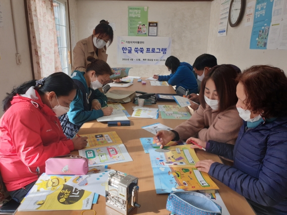 ÀÚȰ»ç¾÷ Âü¿©ÀÚ Áß ÇѱÛÀ» ÀÐ°í ¾²±â°¡ ¾î·Á¿ö ºÒÆíÇÔÀ» °Þ°í ÀÖ´Â Àú¼ÒµæÃþ ¹× ´Ù¹®È Âü¿©ÁֹεéÀ» ´ë»óÀ¸·Î ¼öÁغ° ÇнÀ ±³À°À» 10°³¿ù¿¡ °ÉÃÄ ÁøÇàÇÑ´Ù. ÇÑ±Û Àбâ¿Í ¹Þ¾Æ¾²±â, ÆíÁö ¾²±â µîÀÇ Ã¼°èÀûÀÎ ¼ö¾÷°ú °úÁ¦¸¦ ÅëÇØ ÇÑ±Û ½Ç·ÂÀ» ½×¾Æ°¥ ¼ö ÀÖµµ·Ï ÇÏ´Â °ÍÀÌ ÀÌ ±³À°ÀÇ ¸ñÇ¥ÀÌ´Ù.