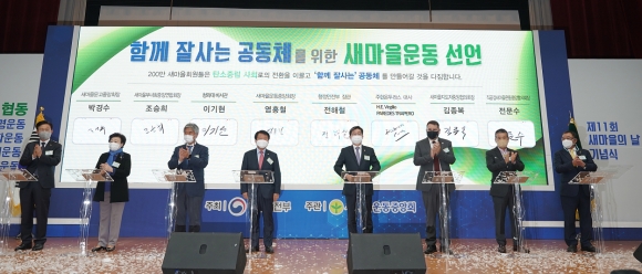 ¡à Á¦11ȸ »õ¸¶À»ÀÇ ³¯ ±â³ä½ÄÀº ±Ù¸é‧ÀÚÁ¶‧Çùµ¿ Á¤½ÅÀ» Çö´ëÀû Àǹ̷Π°è½Â‧¹ßÀü½Ã۰í, ±âÈÄÀ§±â ±Øº¹À» À§ÇÑ ¿¬´ë¿Í Çù·Â, ÇÔ²² Àß »ç´Â °øµ¿Ã¼¸¦ ¸¸µé¾î °¡´Â »õ¸¶À»¿îµ¿ÀÇ ¹Ì·¡°¡Ä¡¸¦ °øÀ¯Çϱâ À§ÇØ ¸¶·ÃµÆ´Ù.