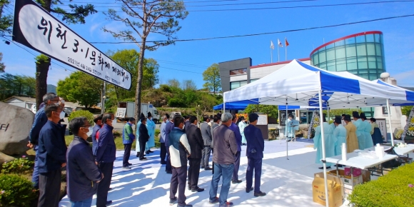ÇÑÆí, À§Ãµ¸é 3¡¤1¹®ÈÁ¦ Çà»ç´Â 2018³âºÎÅÍ 4¿ù¿¡ ¸é¹ÎüÀ°´ëȸ, ÁÖ¹ÎÀÚġȸ ÇÁ·Î±×·¥¹ßǥȸ, 3¡¤1¹®ÈÁ¦¸¦ ÅëÇÕÇÏ¿© À§Ãµ¸é¹ÎÀÇ ³¯ Çà»ç·Î ÁøÇàÇßÀ¸³ª, À̹ø¿¡´Â Äڷγª19·Î ÀÎÇØ 3¡¤1¹®ÈÁ¦ Á¦·ÊÇà»ç¸¸ ´Üµ¶À¸·Î ÁøÇàÇß´Ù. |