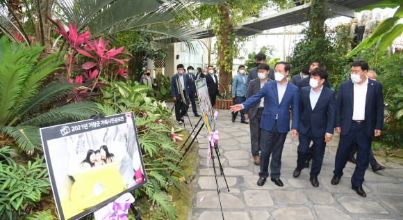 °³Àå½ÄÀº °æ°úº¸°í, ³»ºóÃà»ç, ±â³äÆÛÆ÷¸Õ½º ¼øÀ¸·Î ÁøÇàµÆ°í, ¹æ¹®ÀÚ¼¾ÅÍ ¿Á»óÁ¤¿ø¿¡ Àü½ÃµÈ ¾Æ¸®¹Ì¾Æ ²É°ú ¿´ë½Ä¹°¿øÀÇ °¡Á·»çÁø °ø¸ðÀü ¼ö»óÀÛÀ» °ü¶÷ÇÏ´Â °ÍÀ¸·Î ¸¶¹«¸® µÆ´Ù.