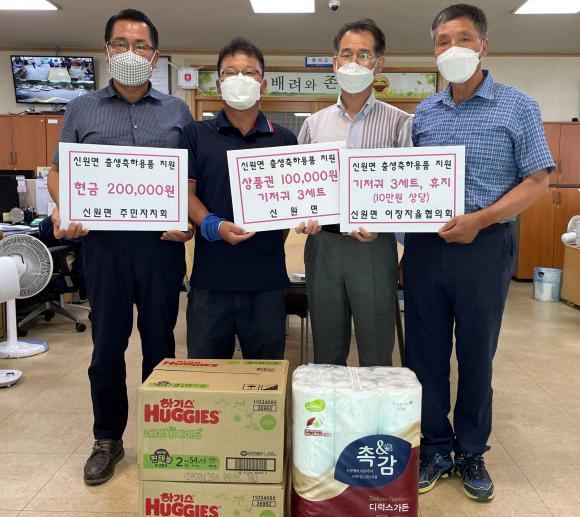 À̳¯ ÃàÇϹ°Ç°Àº ½Å¿ø¸éÁÖ¹ÎÀÚġȸ(ȸÀå ¹ÚÁ¾Çö)¿¡¼ ÀÚü ÃßÁø ÁßÀÎ Àα¸Áõ°¡½ÃÃ¥¿¡ µû¸¥ Ãâ»ê Àå·Á±Ý 20¸¸ ¿ø°ú ÀÌÀåÀÚÀ²ÇùÀÇȸ(ȸÀå ±è¿îÇÏ)¿¡¼ ÁغñÇÑ ±âÀú±Í, ÈÞÁö 10¸¸ ¿ø »ó´ç, ¸é ÀÚüÀûÀ¸·Î ÁغñÇÑ ¾Æ±â¿ëǰ »óǰ±Ç(10¸¸ ¿ø »ó´ç)°ú ±âÀú±Í µîÀÌ´Ù.