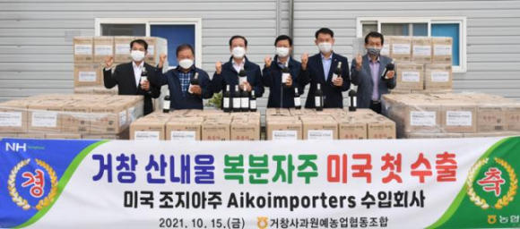 °Åâ»ç°ú¿ø¿¹³óÇù¿¡¼ »ý»êÇÑ ¡®»ê³»¿ï º¹ºÐÀÚÁÖ¡¯°¡ ¹Ì±¹À¸·Î ù ¼öÃâ±æ¿¡ ¿Ã¶ú´Ù. °ÅⱺÀº 10¿ù 15ÀÏ °Åâ»ç°ú¿ø¿¹³óÇù û°ú¹°Á¾ÇÕó¸®Àå¿¡¼ ±¸Àθ𠱺¼ö, À±¼öÇö °Åâ»ç°ú¿ø¿¹³óÇùÁ¶ÇÕÀåÀ» ºñ·ÔÇÑ °ü°èÀÚµéÀÌ Âü¼®ÇÑ °¡¿îµ¥ °Åâ ¡®»ê³»¿ï º¹ºÐÀÚÁÖ¡¯ 4,000º´ ¹Ì±¹ ¼öÃâÀ» ±â³äÇÏ´Â ¼±Àû½ÄÀ» °¡Á³´Ù.