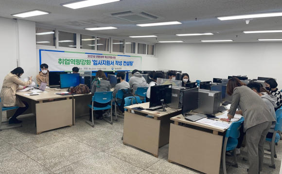 °æ³²µµ¸³°Åâ´ëÇÐ(ÃÑÀå ¹ÚÀ¯µ¿)ÀÌ Áö³ 3ÀÏ Á¹¾÷¿¹Á¤ÀÚ 100¿© ¸íÀ» ´ë»óÀ¸·Î Ãë¾÷¿ª·®°È¸¦ À§ÇÑ ¡®ÀԻ缷ù ÀÛ¼º ÄÁ¼³ÆÃ¡¯ ¹× ¡®¸éÁ¢ ÆÐ¼Ç Áöµµ¡¯ ÇÁ·Î±×·¥À» ½Ç½ÃÇß´Ù.