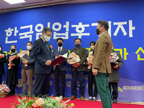 À̳¯ Àü±¹´ëȸ¿¡¼ °ÅâÀÓ¾÷ÈİèÀÚ ºÎȸÀåÀÎ ±è±â¹ü¾¾°¡ ¿µ±¤ÀÇ »ê¸²Ã»Àå»óÀ» ¼ö»óÇÏ°Ô µÇ¾ú´Ù. ±èºÎȸÀåÀº 2008³â 1¿ù 18ÀÏ¿¡ ÀÓ¾÷ÈİèÀÚ¿¡ ¼±Á¤µÇ¾î ÀÓ¾÷ÈİèÀڷΠȰµ¿ÇÏ´ø Áß 2011³â¿¡´Â Çѱ¹ÀÓ¾÷ÈİèÀÚ °æ³²µµÁöȸ ¿Ü¹«ºÎȸÀåÀ¸·Î Ȱµ¿ÇÏ¸é¼ µµÁöȸ ¹× ÀÓ¾÷ÈİèÀÚÀÇ ¹ßÀü¿¡ À̹ÙÁöÇÏ¿´°í, ±¹»ê¸ñÀç»ê¾÷ÀÇ ¹ßÀüÀ» À§ÇØ ¸ñÀçµî±ÞÆò°¡»ç ÀÚ°ÝÁõÀ» ÃëµæÇÏ¿© ±¹»ê¸ñÀçÀÇ ¹ßÀü¹æÇâ¿¡ ´ëÇÑ ¿©·¯ °¡Áö ´ë¾ÈÀ» Á¦½ÃÇϱ⵵ Çß´Ù. ¶ÇÇÑ °ÅⱺÇùÀÇȸ ºÎȸÀåÀ» ¸Ã¾Æ ȸ¿øµéÀÇ À¯´ë°È ¹× °ÅⱺÇùÀÇȸ ¹ßÀüÀ» À§ÇØ Çå½ÅÀûÀ¸·Î ³ë·ÂÇÏ´Â µî ÇöÀç ´ë¸¦ À̾î Áß¾ÓÁ¦Àç¼Ò¸¦ ¿î¿µÇÏ¸é¼ ±¹»ê¸ñÀçÃë±Þ¸¸À» °íÁýÇÏ¸ç ±¹»ê¸ñÀçÀÇ È¿À²ÀûÀΠȰ¿ë¹æ¾ÈÀÇ Á¦½Ã·Î ºÎ°¡°¡Ä¡¸¦ âÃâÇÏ´Â µî ŸÀÇ ±Í°¨ÀÌ µÇ¾ú±â¿¡ ¼ö»óÇÏ°Ô µÇ¾ú´Ù°í ÇÑ´Ù.
