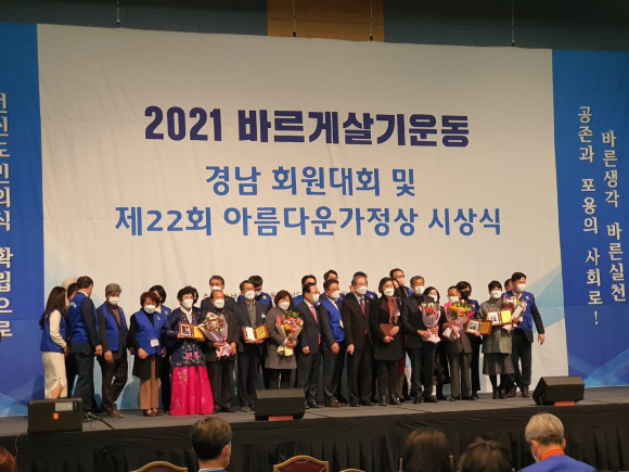 ¹Ù¸£°Ô»ì±â¿îµ¿ °ÅⱺÇùÀÇȸ(ȸÀå ±èÈ«Á¶)´Â Áö³ 9ÀÏ ¹Ù¸£°Ô»ì±â°æ»ó³²µµ ÇùÀÇȸ°¡ ÁÖÃÖÇÏ°í °æ»ó³²µµ°¡ ÁÖ°üÇÑ 2021³â °æ³²È¸¿ø´ëȸ ¹× Á¦22ȸ ¾Æ¸§´Ù¿î °¡Á¤»ó ½Ã»ó½Ä ¿¡ Âü¼®Çß´Ù.