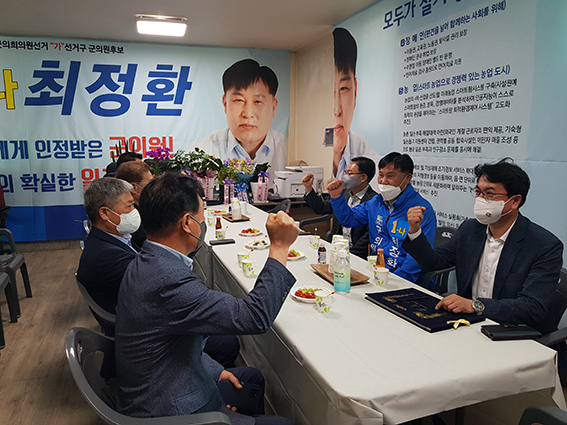 °ÅⱺÀÇ¿ø ¡®°¡¡¯ ¼±°Å±¸(°ÅâÀ¾)¿¡ Ãâ»çÇ¥¸¦ ´øÁø ´õºÒ¾î¹ÎÁÖ´ç ÃÖÁ¤È¯ Èĺ¸ ¼±°Å»ç¹«¼Ò °³¼Ò½ÄÀÌ 18ÀÏ ¾à 100¿© ¸íÀÇ ÁöÁöÀÚ ¹× ´ç¿ø µîÀÌ Âü¼®ÇÑ °¡¿îµ¥ °ÅâÀ¾ ¼ÒÀç ÀÚ½ÅÀÇ ¼±°Å»ç¹«¼Ò¿¡¼ ÀÖ¾ú´Ù. ÃÖ È帴 ÀÌ ÀÚ¸®¿¡¼ ¡®Á¸°æÇÏ°í »ç¶ûÇÏ´Â ±º¹Î ¿©·¯ºÐ²² ÀÎ»ç ¿Ã¸°´Ù¡¯°í ¸»Çϰí, ÀÚ½ÅÀº À̹ø 6.1 Áö¹æ¼±°Å¿¡¼ °ÅⱺÀÇ¿ø ¡®°¡¼±°Å±¸(°ÅâÀ¾)¿¡ Ã⸶ÇÑ ÃÖÁ¤È¯À̶ó°í ¼Ò°³Çß´Ù. ÀÌ¾î ±×´Â ¡¯Áö³ 2018³â 6¿ù 13ÀÏ Áö¹æ¼±°Å¿¡ Ã⸶ÇÏ¿© ±º¹Î ¿©·¯ºÐÀÇ ¼º¿ø ´öºÐ¿¡ ´ç½Ã Ã⸶ÀÚµé Áß ÃÖ´Ù µæÇ¥¸¦ Çß¾ú´Ù¡®°í ´ç½Ã¸¦ ȸ°íÇÏ°í ±º¹Îµé²²¼ °ÆÁ¤ÇϽô Áö¿ªÀÇ ÁÖ¿ä Çö¾È°ú ¸¹Àº ¹Î¿øÀ» Àڽſ¡°Ô Áּ̰í, ±× ¼ÒÁßÇÑ ¶æÀ» ûÃëÇÏ°í ¶Ç ÀÌµé ¹Î¿øÀεéÀÌ Á¦±âÇÑ ÁÖ¿ä ¹Î¿øµéÀÌ ÇϳªÇϳª ÇØ°áµÉ ¶§°¡ °¡Àå º¸¶÷µµ ÀÖ¾úÁö¸¸, ¶§·Î´Â °¢Á¾ ¹ý±Ô¿¡ ¹ÀÌ°í »óÀ§¹ý¿¡ ÀúÃ˵Ǿî ÇØ°áµÇÁö ¸øÇÑ °Íµµ ÀÖ¾î ¾Æ½¬¿òµµ ³²´Â´Ù¡¯°í ¸»Çß´Ù.