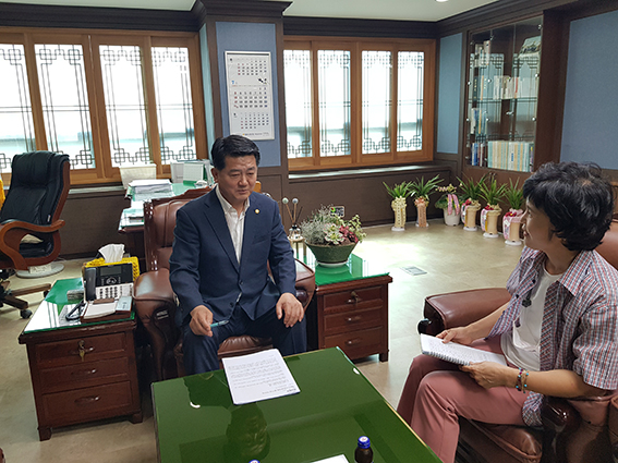 | °ÅⱺÀÇȸ ÀÌÈ«Èñ ÀÇÀåÀ» ¸¸³ª °ÅâÇÑ´º½º ¹ßÇàÀÎ(¹é °Èñ)ÀÌ ÀÎÅͺ並 Çϰí ÀÖ´Ù. |