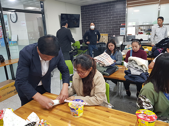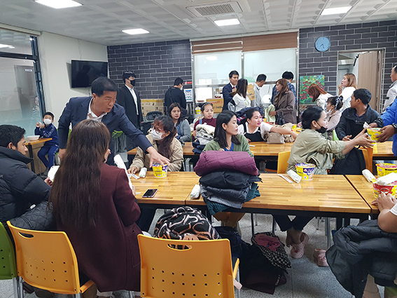 | °Åâû³âȸÀÇ¼Ò ÀÌÄ¡¿ø ȸÀåÀÌ ¿Ü±¹ÀÎ ±Ù·ÎÀڵ鿡°Ô ÀÇ·ù¸¦ ì°ÜÁÖ¸ç °Ý·ÁÇϰí ÀÖ´Ù |