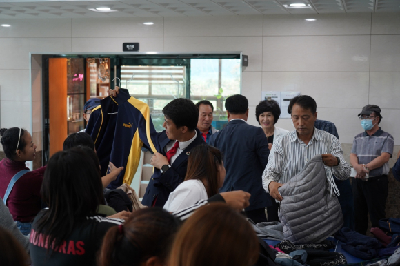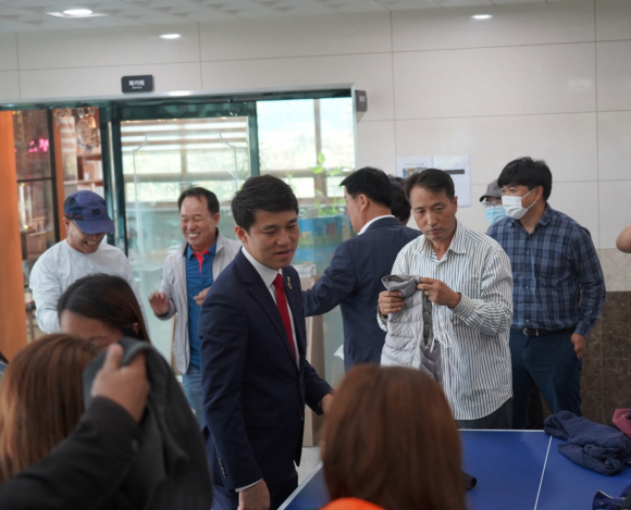 À̹ø Çà»ç¸¦ ÁÖ°üÇÑ ½ÅÀçÈ ÀÇ¿øÀº ¡°Æò¼Ò ÀÇÁ¤È°µ¿À» À§ÇØ °ü³»ÀÇ °¢ ¸¶À»À» µ¹´Ùº¸¸é ¿Ü±¹ÀÎ °èÀý ±Ù·ÎÀÚµéÀ» Á¢ÇÏ°Ô µÇ´Âµ¥ ¿äÁò°°ÀÌ ¾ÆÄ§Àú³áÀ¸·Î Á¦¹ý ½Ò½ÒÇÑ ±â¿îÀÌ °¨µµ´Â ³¯¾¾¿¡µµ ¹ÝÆÈ Ƽ¼ÅÃ÷¸¦ ÀÔ°í ±Ù·ÎȰµ¿À» Çϰí ÀÖ´Â ¸ð½ÀÀ» º¸¸é¼ ´Ã ¸¶À½ÀÌ ¾ÆÆÍ´Ù¡±°í ¸»ÇÏ°í ¡°¿À´Ã ÀÌó·³ ÀÌµé °èÀý±Ù·ÎÀڵ鿡°Ô °èÀý¿¡ ¾Ë¸ÂÀº ¿Ê°¡ÁöµéÀ» Á¦°øÇÏ°Ô µÇ¾î ¸¶À½ÀÌ »ÑµíÇÏ´Ù¡°°í ¼Ò°¨À» ¹àÇû´Ù.
