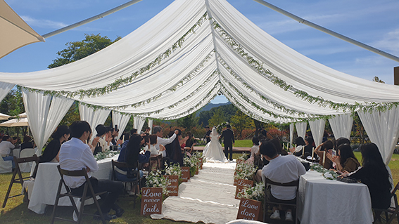 °ÅââÆ÷¿ø ¾ß¿Ü°áÈ¥½ÄÀåÀº 1ÀÏ 1½Ö, ¼±Âø¼øÀ¸·Î ½ÅûÀ» ¹Þ°í ÀÖÀ¸¸ç, °áÈ¥½Ä ¼³°è¿Í ÁøÇàÀº ÀÌ¿ëÀÚ°¡ Á÷Á¢ ÁغñÇØ¾ß ÇÑ´Ù.