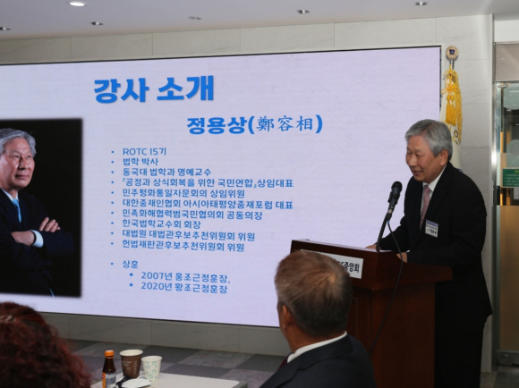 ¿ì¸®³ª¶óÀÇ ÀÚÀ¯¹ÎÁÖÁÖÀÇ¿Í ¹ýÄ¡ÁÖÀÇ, °øÁ¤°ú »ó½Ä ȸº¹ÀÇ ´ã·ÐÀ» Á¦±âÇϸç Èñ¸Á°ú º¯È¸¦ À§ÇÑ °øµ¿Ã¼Àû ¿¬´ë¿Í ÇൿÀ» Ãß±¸ÇØ ¿Â ¡®°øÁ¤°ú »ó½Ä ȸº¹À» À§ÇÑ ±¹¹Î¿¬ÇÕ¡¯ÀÇ Á¤¿ë»ó »óÀÓ´ëÇ¥(µ¿±¹´ë ¸í¿¹±³¼ö, ROTC Á¦15±â, Á¦3°ø¼öƯÀü´Ü)´Â ¡®À§±âÀÇ Çѹݵµ! ³²ºÏÅëÇÕ°ú ÅëÀÏÀÇ »õ ±æÀ» À§ÇÑ ¸ð»ö¡¯À̶ó´Â ÁÖÁ¦·Î ´ëÇѹα¹ROTCÁß¾Óȸ°ü 5Ãæ ¸í¿¹ÀÇ Àü´ç Ȧ¿¡¼ ¿¸° ´ëÇѹα¹¿¹ºñ¿ªÀå±³¿¬ÇÕȸ ÃÊûÅä·Ðȸ¿¡¼ Áö³ 25ÀÏ °¿¬À» Çß´Ù.