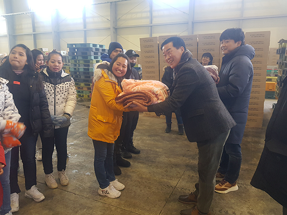 À̳¯ °¡Áø °íÁ¦¸é ¿Ü±¹ÀÎ °èÀý±Ù·ÎÀÚ ¼Ûº°È¸´Â ³óÃÌÀÏ¼Õ µ½±â ÀÏȯÀ¸·Î Áö³ 8¿ù ±¹³»¿¡ ÀÔ±¹ÇØ ±×µ¿¾È °Åⱺ °íÁ¦¸é °ü³»ÀÇ »ç°ú³óÀå¿¡¼ ÁÖ·Î ÀÏÀ» ÇØ ¿Â ¿Ü±¹ÀÎ °èÀý±Ù·ÎÀÚµéÀÌ ±Ù·Î±â°£ ¸¸·á¿Í ÇÔ²² ÀÚ±¹À¸·Î ¶°³ª±â Àü À̵鿡 ´ëÇÑ ±×µ¿¾ÈÀÇ ³ë°í¸¦ Ä¡ÇÏÇϰí, Ÿ±¹¿¡¼ Å©¸®½º¸¶½º À̺긦 ¸ÂÀº À̵鿡°Ô Ưº°ÇÑ Àǹ̸¦ ºÎ¿©Çϱâ À§Çؼ ¸¶·ÃµÆ´Ù.