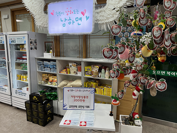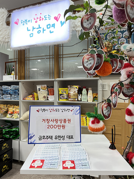 °Åⱺ ³²ÇÏ¸é ´ë¾ß¸¶À» Ãâ½Å À¯ÇѼº(±ÝÈ£ÁÖÅà ´ëÇ¥)¾¾´Â ¿¬¸»À» ¸Â¾Æ ³²Çϸé ÇàÁ¤º¹Áö¼¾Å͸¦ ¹æ¹®ÇØ ¾î·Á¿î ÀÌ¿ôÀ» À§ÇØ ½á´Þ¶ó¸ç °Åâ»ç¶û»óǰ±Ç 200¸¸¿øÀ» 26ÀÏ Àü´ÞÇß´Ù. ±ÝÈ£ÁÖÅà À¯ÇѼº ´ëÇ¥´Â ¼Ò¿ÜµÈ ÀÌ¿ôµéÀ» À§ÇØ ¸Å´Þ ³²ÇÏ¸é °øÀ¯³ÃÀå°í¿¡ ÈÄ¿ø¹°Ç°À» ±âÅ¹ÇØ Áö¿ª»ç¶û ³ª´®¿¡ ¾ÕÀå¼°í ÀÖÀ¸¸ç, ¸éÀº À̹ø¿¡ Àü´ÞµÈ ±âºÎǰÀº °ü³» Ãë¾à°èÃþ ¾Æµ¿ÀÌ µû¶æÇÑ °Ü¿ïÀ» º¸³¾ ¼ö ÀÖµµ·Ï ³¹æºñ·Î Áö¿øÇÒ °èȹÀÌ´Ù.