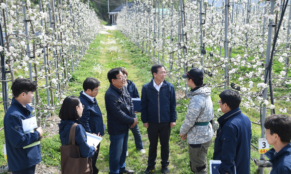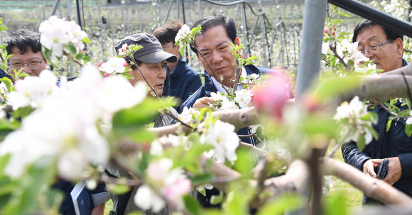 ±¸Àθð °Åⱺ¼ö´Â Áö³ 19ÀÏ ÇÑ ÇØ »ç°ú³ó»ç¸¦ °áÁ¤ÇÏ´Â »ç°ú²É °³È»óȲ ÆÄ¾ÇÀ» À§ÇØ »ç°ú ÁÖ»êÁöÀÎ °íÁ¦, ÁÖ»ó¸é °ú¿øÀ» ¹æ¹®ÇØ ÃÖ±Ù Àú¿Â¿¡ µû¸¥ ÇÇÇØ»óȲÀ» Á¡°ËÇÏ°í ³ó°¡¸¦ °Ý·ÁÇß´Ù. 3¿ù ÀÌ»ó°í¿ÂÀ¸·Î °ú¼ö °³È±â°¡ »¡¶óÁø »óȲ¿¡¼ Áö³ 8Àϰú 9ÀÏ ±â¿ÂÀÌ ¿µÇÏ·Î ³·¾ÆÁö¸é¼ »ç°ú²É Àú¿ÂÇÇÇØ°¡ ÀϺΠ¹ß»ýÇØ ±º¿¡¼´Â ÇÇÇØ »óȲ ÆÄ¾Ç¿¡ ³ª¼¹´Ù. ÀÌ¿¡ ³ó¾÷±â¼ú¼¾ÅÍ´Â ÇöÀå±â¼úÁö¿ø´ÜÀ» ¿î¿µÇØ ²É´« °í»ç µî ÇÇÇØ°¡ ½ÉÇÑ Ç°Á¾ÀÎ ÈÄÁö, ½Ã³ª³ë °ñµå µîÀ» Àç¹èÇÏ´Â ÇÇÇØ³ó°¡¿¡°Ô ÀûȽñ⸦ ÃÖ´ëÇÑ ´ÊÃß°í Àΰø¼öºÐ¿¡ °¢º°ÇÑ ÁÖÀǸ¦ ±â¿ï¿© Âø°ú·®À» ÃÖ´ëÇÑ È®º¸Çϵµ·Ï ¾È³»Çϰí ÀÖ´Ù.