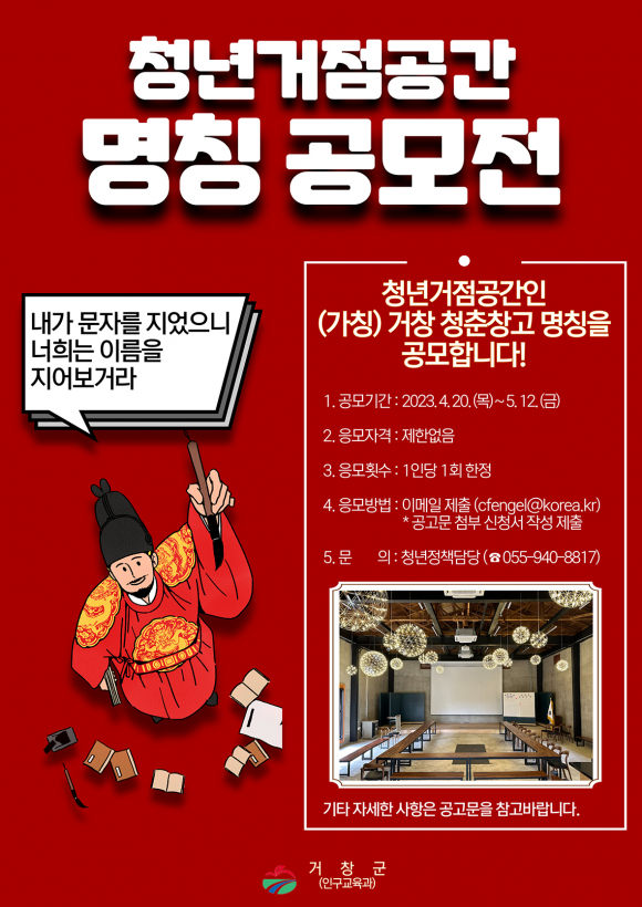 °ÅⱺÀº û³âÀÌ ÀÚÀ¯·Ó°Ô ¸ðÀÏ ¼ö Àִ û³â °ÅÁ¡ °ø°£À» Á¶¼ºÇϰí û³â º¹ÇÕ ¹®È °ø°£ÀÎ (°¡Äª)°ÅâûÃáâ°íÀÇ »õ À̸§À» 5¿ù 12ÀϱîÁö °ø¸ðÇÑ´Ù.