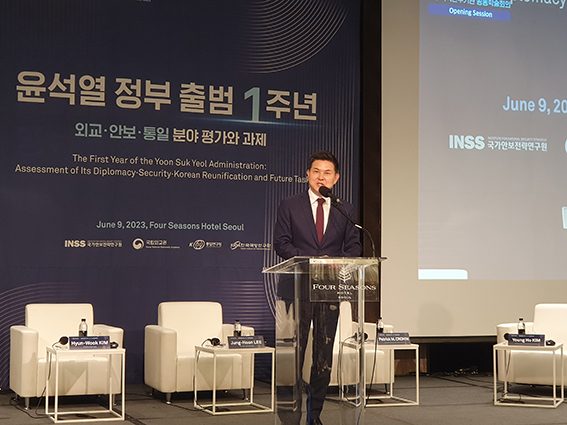 | ±èÅÂÈ£ ±¹È¸ ¿Ü±³ÅëÀÏÀ§¿øÀåÀÌ À±¼®¿Á¤ºÎ Ãâ¹ü 1³âÀ» ±â³äÇØ 4°³ ±¹Ã¥¿¬±¸±â°üÀÌ ÁÖÃÖÇÑ °øµ¿ ÇмúȸÀÇ¿¡ Âü¼®ÇØ ¿Ü±³¾Èº¸ÅëÀϺоßÀÇ ¼º°ú¿¡ ´ëÇØ ¹ß¾ðÇϰí ÀÖ´Ù. |