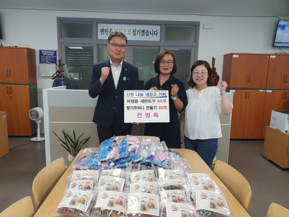 °Åⱺ ½Å¿ø¸é(¸éÀå ±èÀμö)Àº 3ÀÏ Àü¸í¿Á °Åⱺ »ýȰ°ø°¨Á¤Ã¥Âü¿©´Ü ´ëÇ¥°¡ ¿©Çà¿ë ¼¼¸éµµ±¸ ¼¼Æ® 60°³, Çâ±âÁÖ¸Ó´Ï ¸¸µé±â ¼¼Æ® 60°³¸¦ ½Å¿ø ³ª´® ³ÃÀå°í¿¡ ±âŹÇß´Ù°í ¹àÇû´Ù.