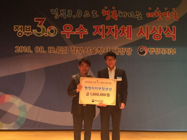 °Åⱺ(±º¼ö ¾çµ¿ÀÎ)Àº ÇàÁ¤ÀÚÄ¡ºÎ°¡ Àü±¹ ÁöÀÚü¸¦ ´ë»óÀ¸·Î ½Ç½ÃÇÑ ‘2015³âµµ Á¤ºÎ3.0 ÃßÁø½ÇÀû Æò°¡’¿¡¼ ¿ì¼ö±â°üÀ¸·Î ¼±Á¤µÅ Àå°ü ǥâÀ» ¹Þ¾Ò´Ù°í Áö³ 12ÀÏ ¹àÇû´Ù.