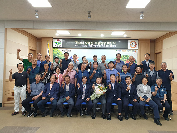 °Åⱺ ÁÖ»ó¸é(¸éÀå ¹Ú½ÂÁø)Àº Áö³ 12ÀÏ ÇàÁ¤º¹Áö¼¾ÅÍ È¸Àǽǿ¡¼ ½ÅÀçÈ, ÃÖÁØ±Ô ±ºÀÇ¿ø°ú ±â°ü¡¤´ÜüÀå, ÀÌÀå, Á÷¿ø µî 50¿© ¸íÀÌ Âü¼®ÇÑ °¡¿îµ¥ Á¦30´ë ¹Ú½ÂÁø ÁÖ»ó¸éÀå ÃëÀÓ½ÄÀ» °³ÃÖÇß´Ù. ¹Ú½ÂÁø ÁÖ»ó¸éÀåÀº 2021³â »ç¹«°üÀ¸·Î ½ÂÁøÇØ °íÁ¦¸éÀå, ³ó¾÷±â¼ú°úÀå, ³ó¾÷±â¼ú¼¾ÅÍ ¼ÒÀåÀ» ¿ªÀÓÇß°í, 2023³â 7¿ù 12ÀÏ Àλç¹ß·É¿¡ µû¶ó ÁÖ»ó¸éÀåÀ¸·Î ºÎÀÓÇß´Ù.