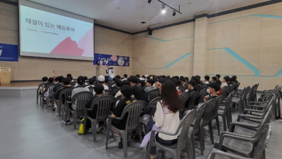 °Åâ±³À°Áö¿øÃ»(±³À°Àå À̸íÁÖ) ¿µÀç±³À°¿øÀº 7¿ù 27ÀÏ(¸ñ) ¿µÀç±³À°´ë»óÀÚ 85¸í°ú °»ç12¸íÀÌ Âü¿©ÇÑ °¡¿îµ¥, ¸¶»ê ·Îº¿·£µå¿¡¼ ¿µÀçÄ·ÇÁ¸¦ ½Ç½ÃÇß´Ù. À̹ø ¿µÀçÄ·ÇÁ´Â 4Â÷ »ê¾÷Çõ¸íÀ» ¸ÂÀÌÇÏ´Â ¹Ì·¡ ¼¼´ë¿¡ ¸ÂÃß¾î, ¹Ì·¡ ±â¼ú¿¡ ´ëÇÑ Èï¹Ì¿Í »ó»ó·ÂÀ» ÀÚ±ØÇÏ´Â ÇÁ·Î±×·¥°ú À¶ÇÕÀû »ç°í·ÂÀ» ÇÔ¾çÇÒ ¼ö Àִ üÇèÀ» Æ÷ÇÔÇÏ´Â ¹Ì·¡±³À° ±â¹Ý Áø·Î ±³À°ÀÇ ÀÏȯÀ¸·Î ½Ç½ÃµÇ¾ú´Ù.