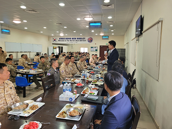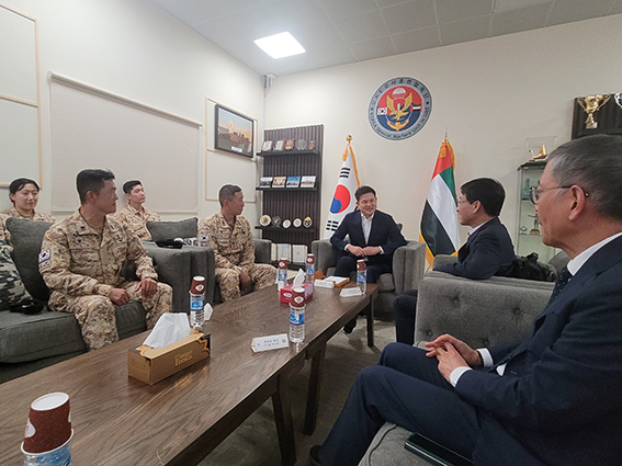 UAE, À̶óÅ©, īŸ¸£ µî Áßµ¿ ±¹°¡µé°úÀÇ °ü°è ¹ßÀü°ú ÀÇȸ°£ Çù·Â °È¸¦ À§ÇØ Áßµ¿ Áö¿ªÀ» ¹æ¹® ÁßÀÎ ±èÅÂÈ£ ±¹È¸ ¿Ü±³ÅëÀÏÀ§¿øÀåÀ» ºñ·ÔÇÑ ±¹È¸ ´ëÇ¥´ÜÀº ù ¹æ¹®±¹ÀÎ UAE¿¡¼ÀÇ Ã¹ ÀÏÁ¤À¸·Î ¾ÆÅ©ºÎ´ë(UAE ±º»çÈÆ·ÃÇù·Â´Ü)À» ¹æ¹®, À庴µéÀ» °Ý·ÁÇÏ°í ½Ä»ç¸¦ ÇÔ²² Çß´Ù.