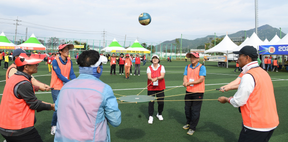 ¶ÇÇÑ, °Åâ, µµ¾à, ¾Æ¸², Çູ ³× °³ ÆÀÀ¸·Î ³ª´² ÆîÄ£ ¸í¶û¿îµ¿È¸¿¡¼´Â Å« °ø ±¼¸®±â, Çùµ¿ °ø ƨ±â±â¸¦ Çϸç Çâ¿ìµéÀÌ ¼·Î ´Ü°áÀ» ´ÙÁö°í, ¿ÀÈÄ¿¡ À̾îÁø ÈÇÕÇѸ¶´ç¿¡¼´Â °¢ Áö¿ª ´ëÇ¥ °¡¼öÀÇ Áñ°Å¿î ¹«´ë°¡ À̾îÁ® Çâ¿ìµéÀÇ ¿ôÀ½°ú ÈûÂù ¹Ú¼ö°¥Ã¤°¡ À̾îÁ³´Ù.