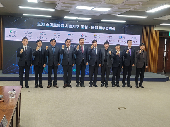 °ÅⱺÀº ³óÃÌÁøÈïû ±¹¸³½Ä·®°úÇпø ÁߺÎÀÛ¹°ºÎ¿¡¼ Á¶ÀçÈ£ ³óÃÌÁøÈïûÀå, ÀÌÁ¾ÇÏ °Åⱺ ºÎ±º¼ö¸¦ ºñ·ÔÇØ 2024~2026³â ³ëÁö ½º¸¶Æ®³ó¾÷ ½Ã¹üÁö±¸·Î ¼±Á¤µÈ 9°³ ÁöÀÚü ´ëÇ¥°¡ Âü¼®ÇÑ °¡¿îµ¥, ½Ã¹üÁö±¸ Á¶¼º¡¤¿î¿µ¿¡ ´ëÇÑ ¾÷¹«Çù¾àÀ» ü°áÇß´Ù°í 20ÀÏ ¹àÇû´Ù.