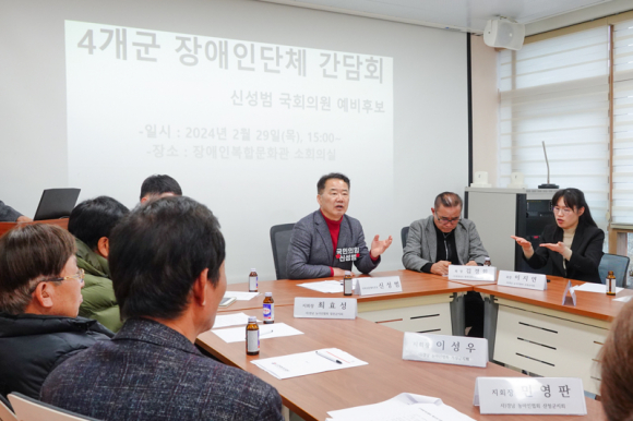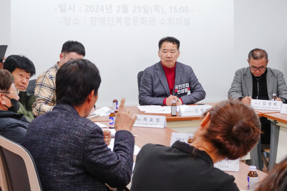 ½Å¼º¹ü ±¹È¸ÀÇ¿ø ¿¹ºñÈ帴 Áö³ 29ÀÏ °ÅâÀå¾ÖÀκ¹ÇÕ¹®È°ü¿¡¼ »êû¡¤ÇԾ硤°Å⡤ÇÕõ 4°³±º Àå¾ÖÀδÜü¿Í °£´ãȸ¸¦ ¿¾î Àå¾ÖÀÎ Áö¿øÇöȲÀ» ÆÄ¾ÇÇÏ°í °³¼±¹æ¾ÈÀ» ³íÀÇÇß´Ù. °£´ãȸ ÀÚ¸®¿¡´Â (»ç)°æ³²ÁöüÀå¾ÖÀÎÇùȸ, (»ç)°æ³²³ó¾ÆÀÎÇùȸ, (»ç)°æ³²½Ã°¢Àå¾ÖÀκ¹Áö¿¬ÇÕȸ, (»ç)°æ³²Àå¾ÖÀκθ𿬴ë ÀÓ¿ø ¹× °ü°èÀÚ°¡ Âü¼®Çß´Ù.