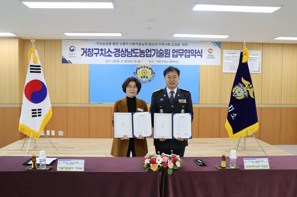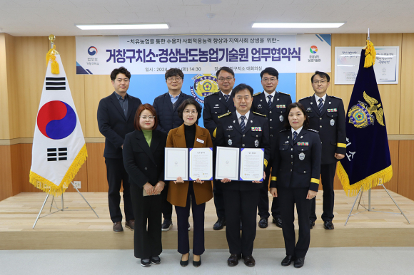 ¡Ø Ä¡À¯³ó¾÷À̶õ ³ó¾÷¡¤³óÃÌ ÀÚ¿øÀ̳ª À̸¦ ÀÌ¿ëÇØ ±¹¹ÎÀÇ ½Åü, Á¤¼, ½É¸®, ÀÎÁö, »çȸ µîÀÇ °Ç°À» µµ¸ðÇϴ Ȱµ¿°ú »ê¾÷À» ÀǹÌÇϰí ä¼Ò¿Í ²É µî ½Ä¹°»Ó¸¸ ¾Æ´Ï¶ó °¡Ãà ±â¸£±â, »ê¸²°ú ³óÃ̹®ÈÀÚ¿øÀ» ÀÌ¿ëÇÏ´Â °æ¿ì±îÁö ¸ðµÎ Æ÷ÇÔ À̹ø Çù¾à½ÄÀº Á¤Âù½Ä °æ»ó³²µµ³ó¾÷±â¼ú¿øÀåÀ» ºñ·ÔÇÏ¿© °ü·Ã Àü¹®°¡µéÀÌ Âü¼®ÇÑ °¡¿îµ¥ ¼ö¿ëÀÚ ±³Á¤±³È ÇÁ·Î±×·¥ÀÇ ÁúÀ» ³ôÀ̰í, ´Ù¾çÇÑ ºÐ¾ßÀÇ Çù·Â ±â¹ÝÀ» Á¶¼ºÇϱâ À§ÇØ ¸¶·ÃµÇ¾ú´Ù. Çù¾à¿¡ µû¶ó µÎ ±â°üÀº À¯±âÀû Çù·Âü°è¸¦ ±¸ÃàÇϰí, Ä¡À¯³ó¾÷ ÇÁ·Î±×·¥À» ÅëÇØ ¼ö¿ëÀÚÀÇ ½É¸®Àû ¾ÈÁ¤ µî Á¤¼Àû °Ç° ȸº¹ ±âȸ¸¦ Á¦°øÇÒ ¿¹Á¤ÀÌ´Ù.